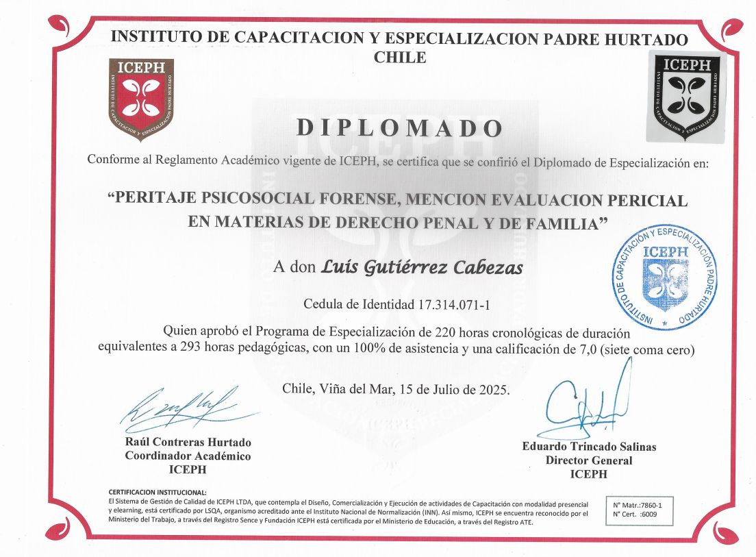 Luis es un profesional con impecable ética y compromiso por los consultantes. Logra evaluar las necesidades de tratamiento y ajustar la intervención de manera efectiva.